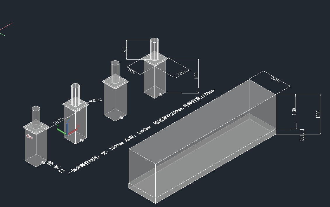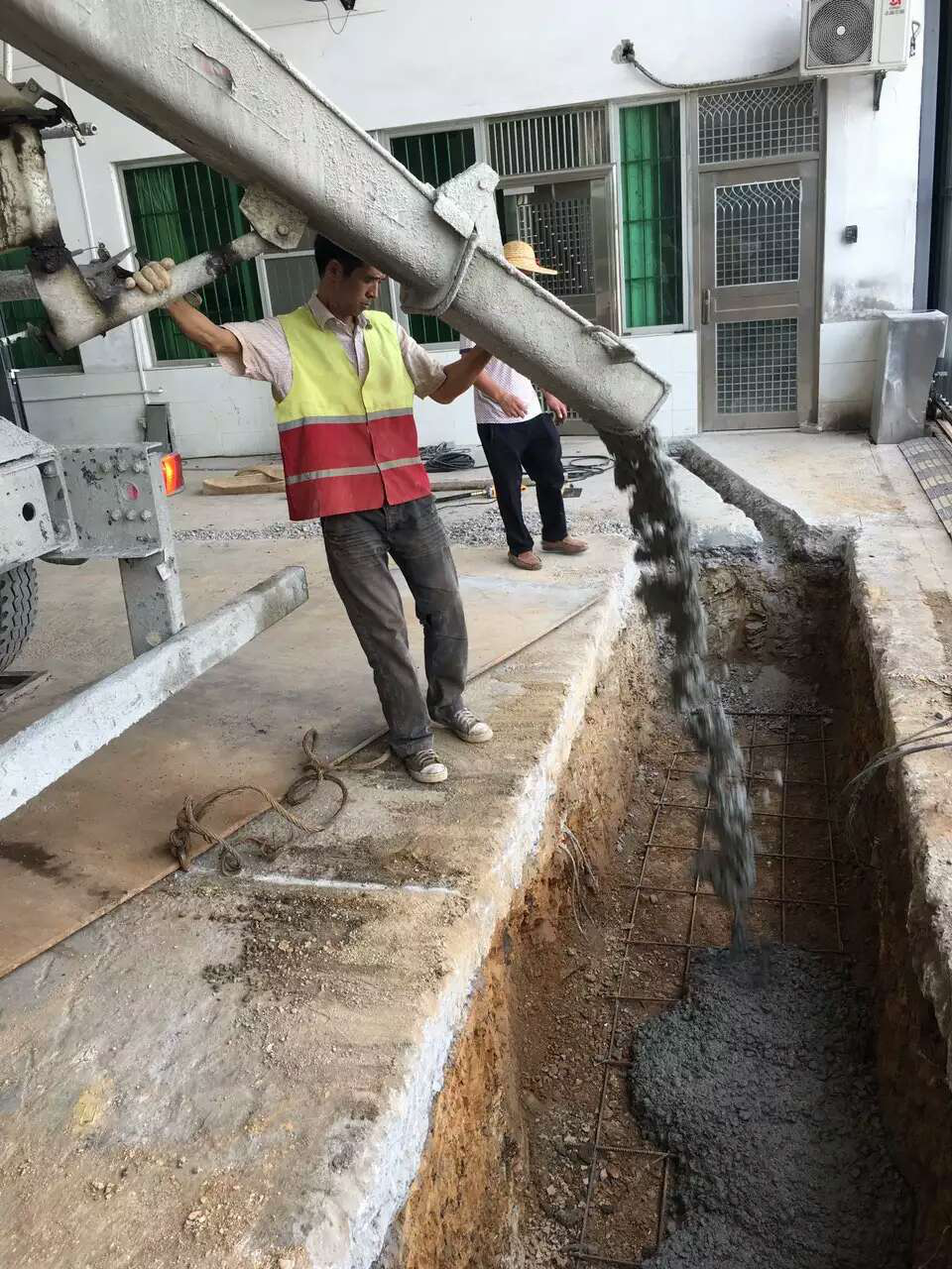 在槽的底部填200mm高的混泥土,水平面精確度要求高(升降柱機架底部,可以全部接觸底下混泥土的面部,從而整個機架都能受力),并在槽的低部中間位置處,留一條PVC60#用于排水。